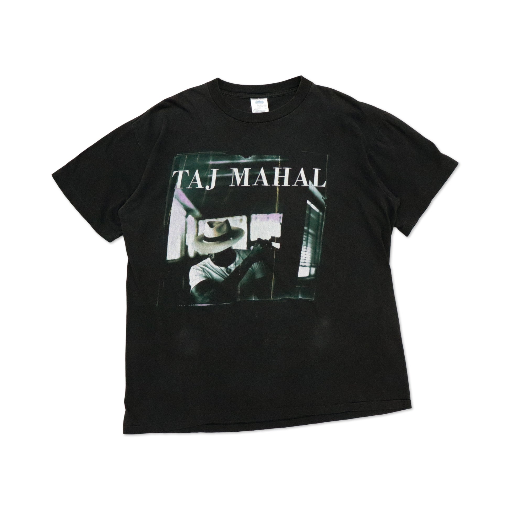 アメリカのブルース、ロック、アフリカンミュージックを広めたとして有名な"Taj Mahal"がプリントされたTシャツ。
