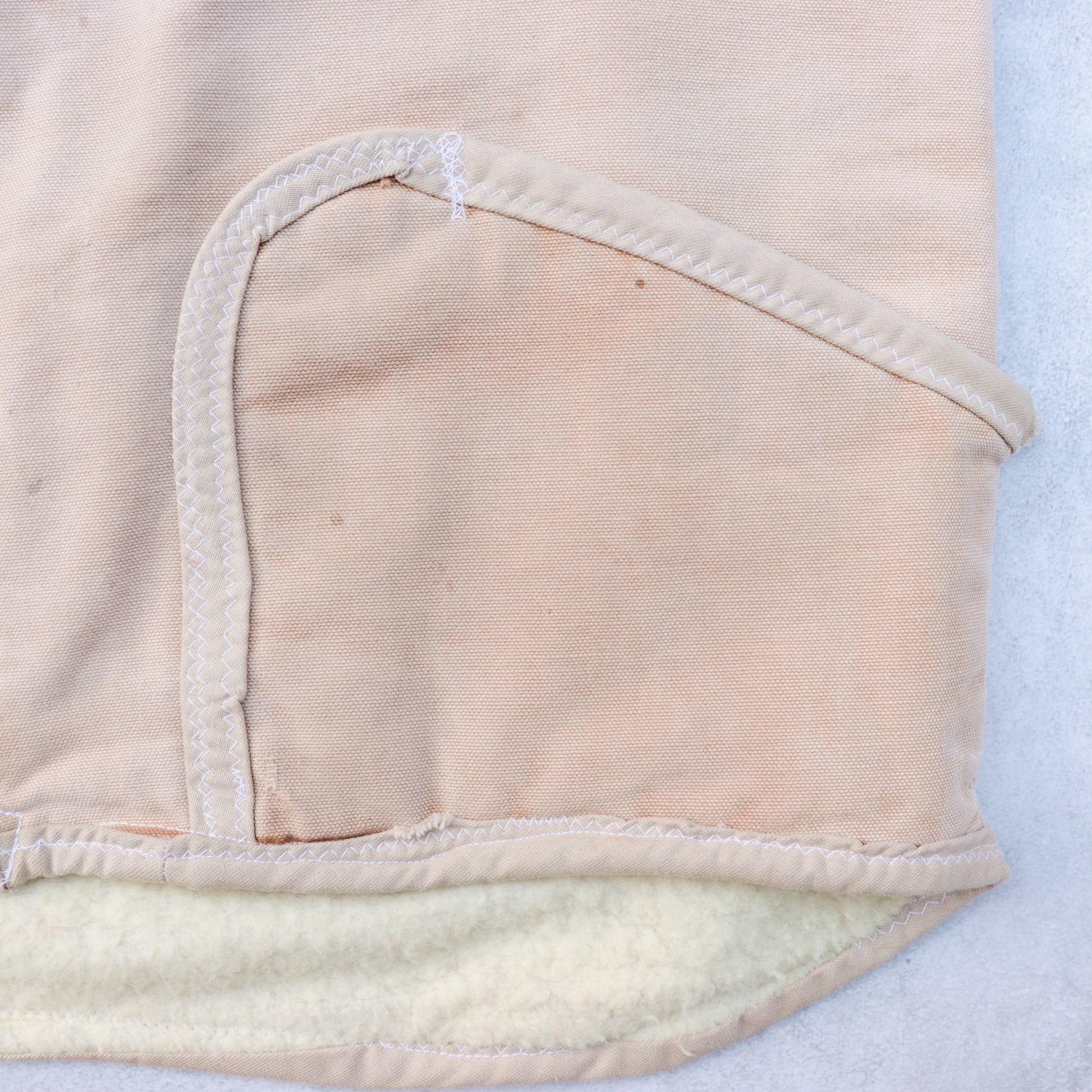 誰かのリペアやリメイクなのか、素人手での裁縫の形跡が・・・パイピングのカラーリングも違うし。。。